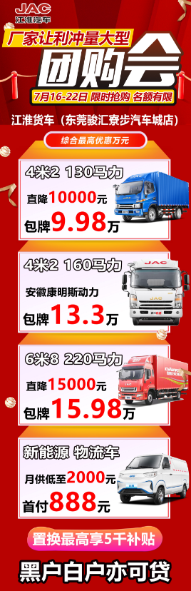 7月22-23日|东莞江淮货车限时厂家团购会,首付888元